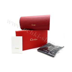 - Комплектация: внешняя картонная коробка, укрепленный футляр CARTIER, материя для протирания линз, буклет CARTIER